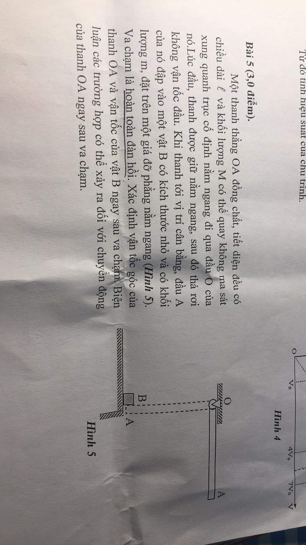 Sau khi va chạm, vì va chạm là hoàn toàn đàn hồi nên áp dụng định luật bảo toàn cơ năng và định luật bảo toàn mô men động lượng ta có: