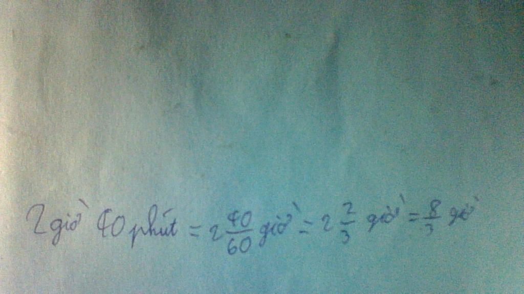 2 giờ 40 phút=160 phút= 160:60=8/3 giờ