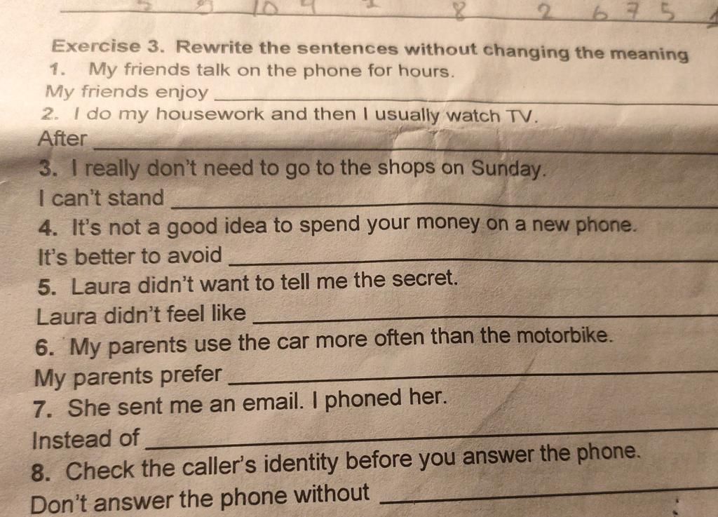 1. My friends enjoy talking on the phone for hours (enjoy + v-ing: thích làm gì)