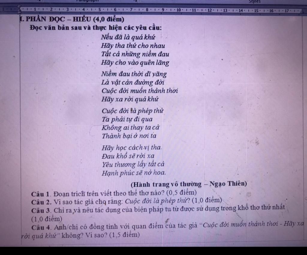 Biện pháp điệp ngữ "Hãy". Tác dụng: nhấn mạnh thông điệp mà tác giả muốn truyền tải đến người đọc đó là hãy tha thứ cho những lỗi lầm trong quá khứ và quên đi những niềm đau trong quá khứ của bản thân mình