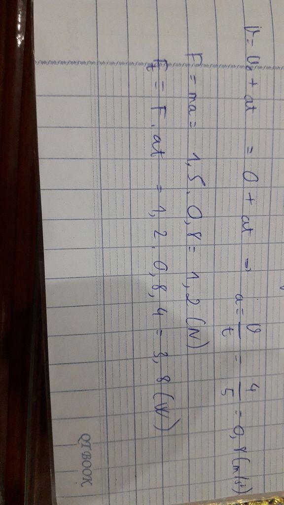 \[v = at \Rightarrow a = \frac{v}{t} = \frac{4}{5} = 0,8m/{s^2}\]