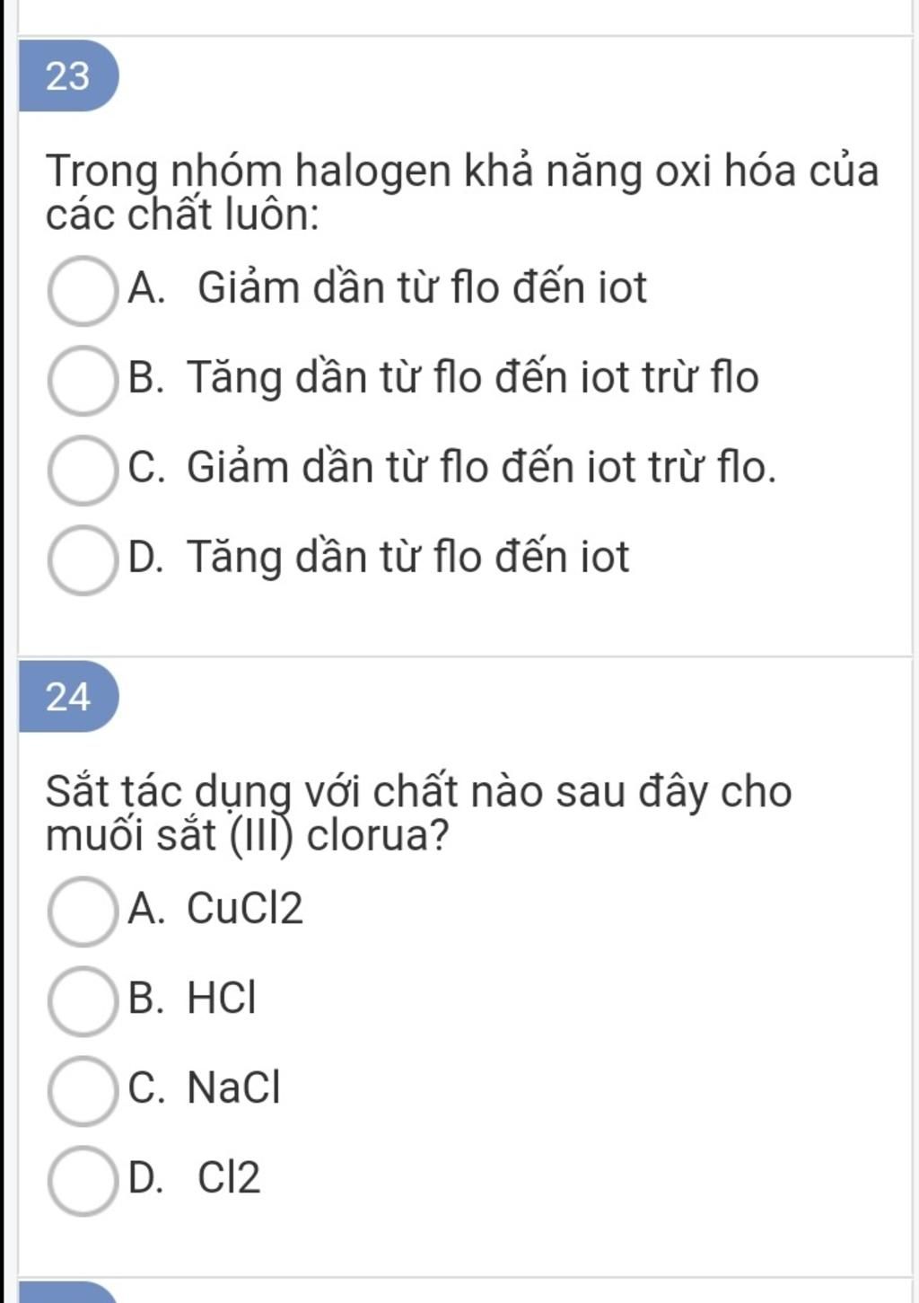 Trong nhóm halogen khả năng oxi hóa của