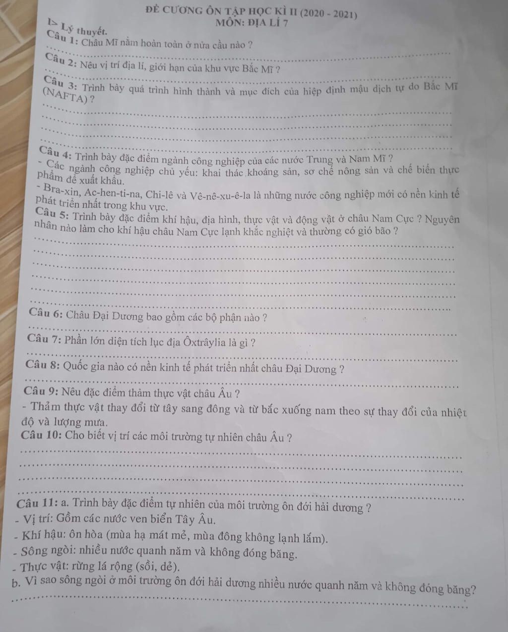 Câu 6: Châu Đại Dương bao gồm: lục địa Ô-xtrây-li-a, 4 quần đảo: Mê-la-nê-đi(đảo núi lửa), Niu-di-len(đảo lục địa), Mi-cro-ne-di(đảo san hô) và Pô-li-nê-đi(đảo núi lửa và san hô)