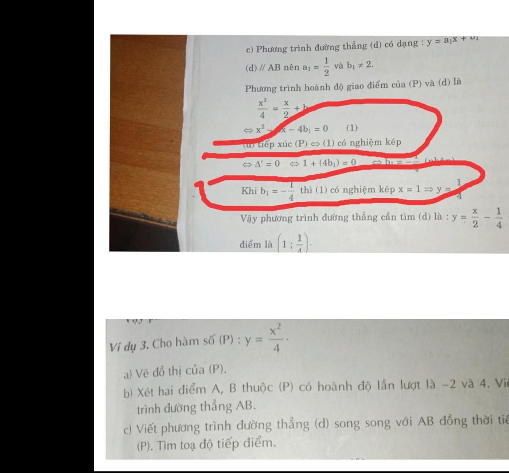 Vì khi `(d)` tiếp xúc với `(P)` có nghĩa giữa `(d)` và `(P)` có một điểm chung