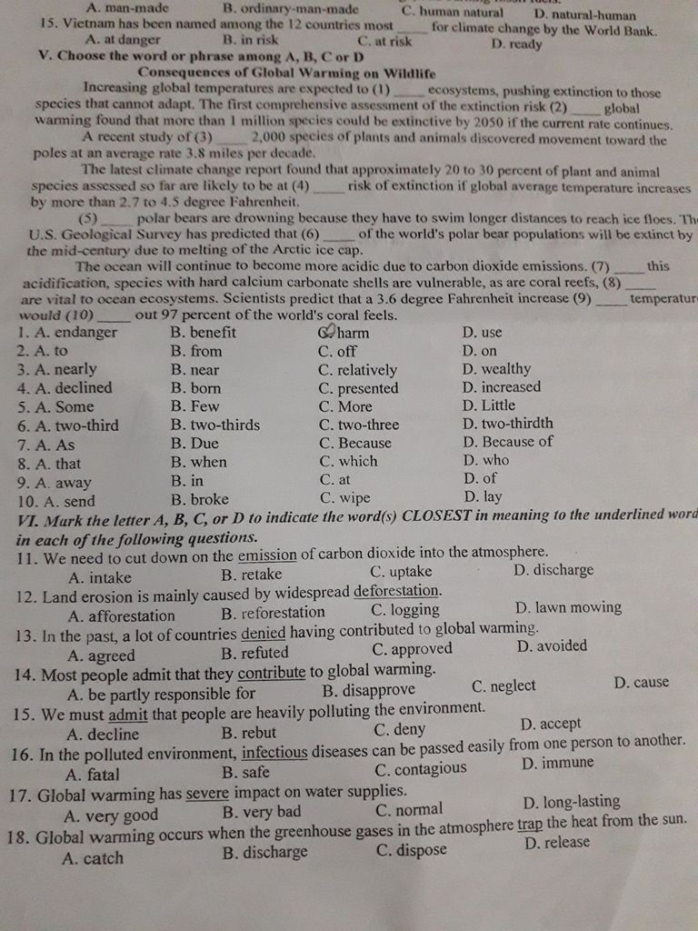 V. Choose the word or phrase among A, B, C or D