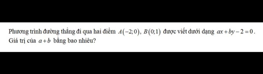 Phương trình đường thẳng đi qua `A(-2;0)` và `B(0;1)` có dạng: