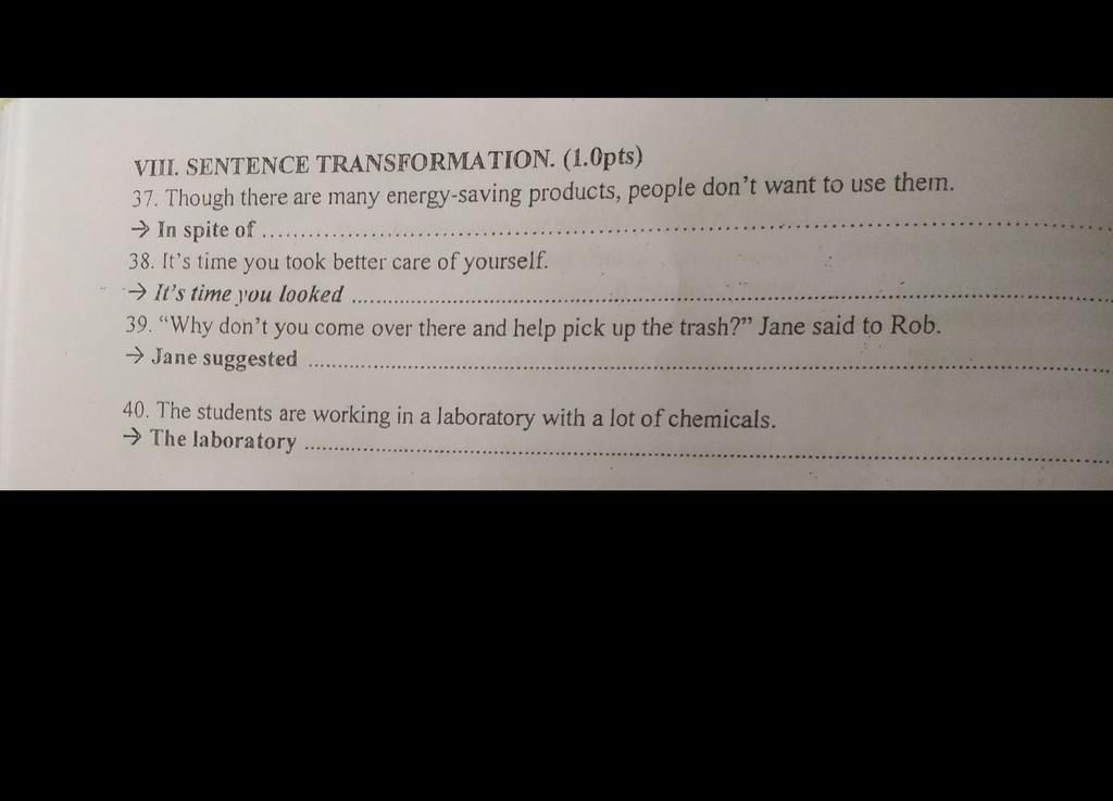 37.in spite of being many energy-saving peoducts,people don't....-in spite of+Ving/noun phrase/the fact that+1 mệnh đề,....S+V