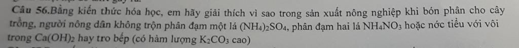 không bón chung đạm với ca(oh)2 hay k2co3 vì nếu bón chung thì sẽ bị thất thoát một lượng đạm do phải giải phóng khí NH3