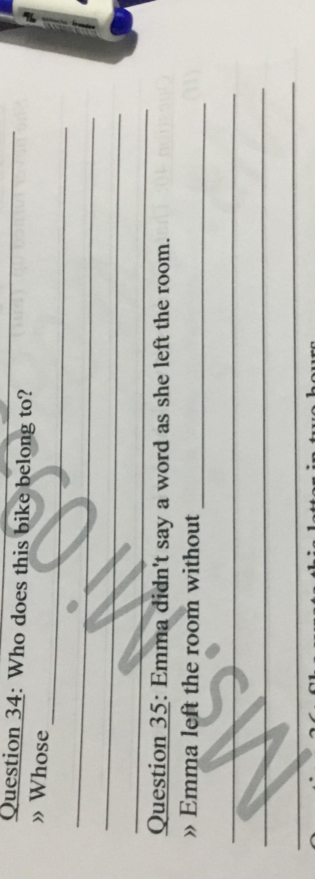 34. Whose bike is this ( Chiếc cặp này là của ai)
