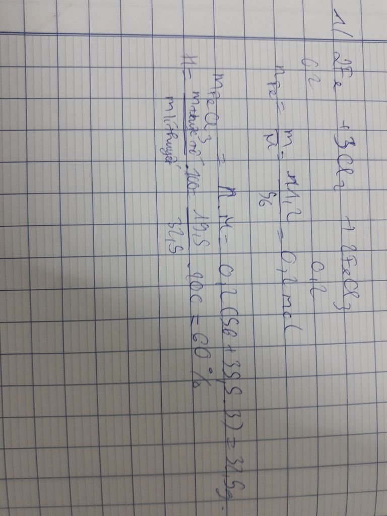 Ta có: $n_{Fe} = \dfrac{11,2}{56} = 0,2\ mol;\ n_{FeCl_3} = n_{Fe\ \text{pư}} = \dfrac{19,5}{162,5}=0,12\ mol$