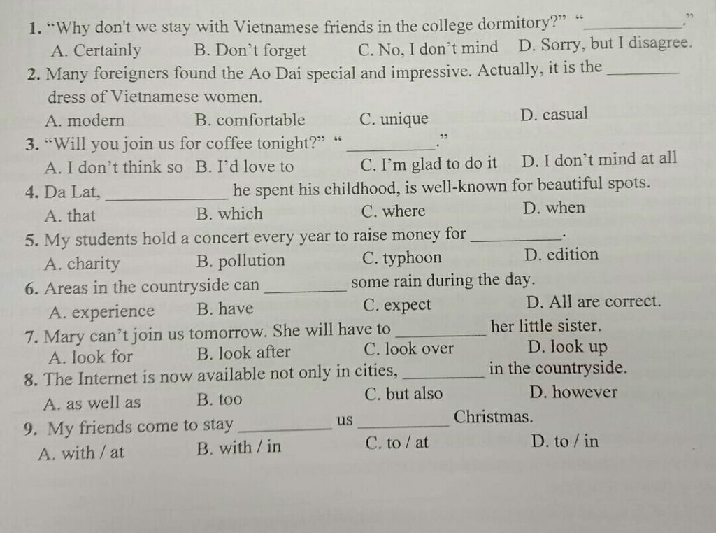 `1.` D (Xin lỗi nhưng tôi không đồng ý)