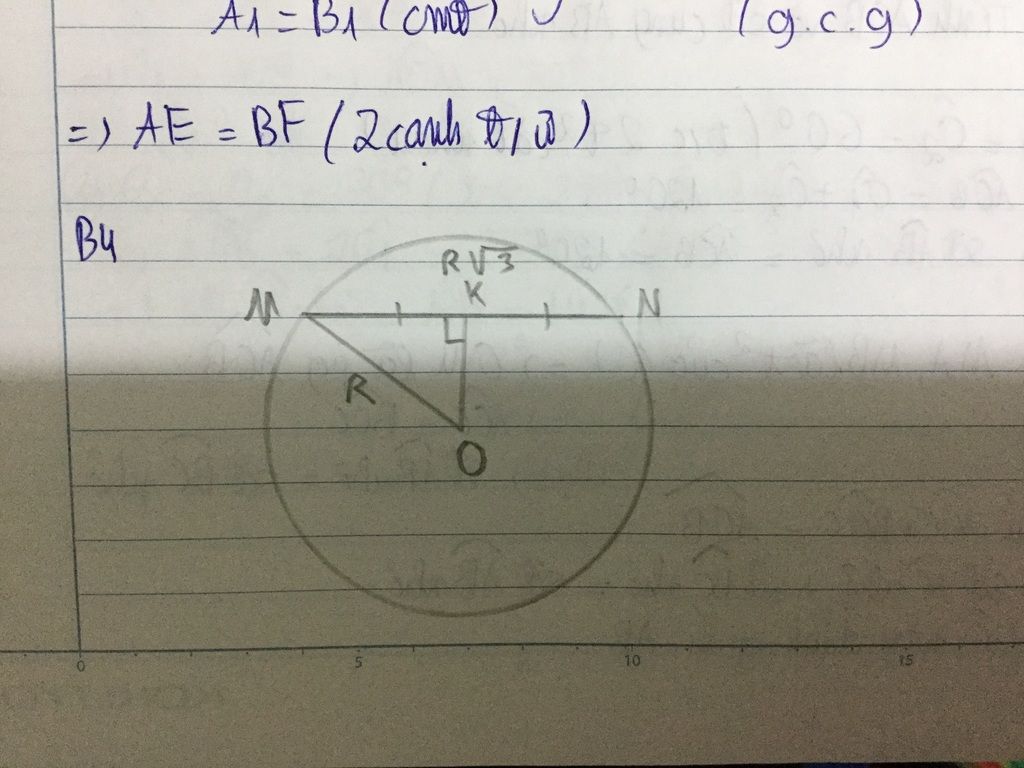 Xét ΔMKO có OK²=MO²-MK²=R²-(R√3 /2)²=R²/4