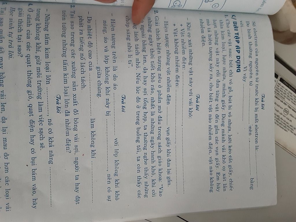 - vật nhiễm điện: bút bi vỏ nhựa, lược nhựa