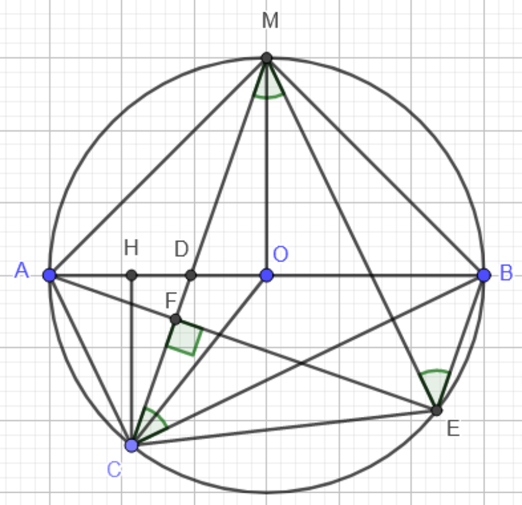 $\Rightarrow MO//CH\Rightarrow \widehat{HCM}=\widehat{CMO}$ (hai góc ở vị trí so le trong) (2)