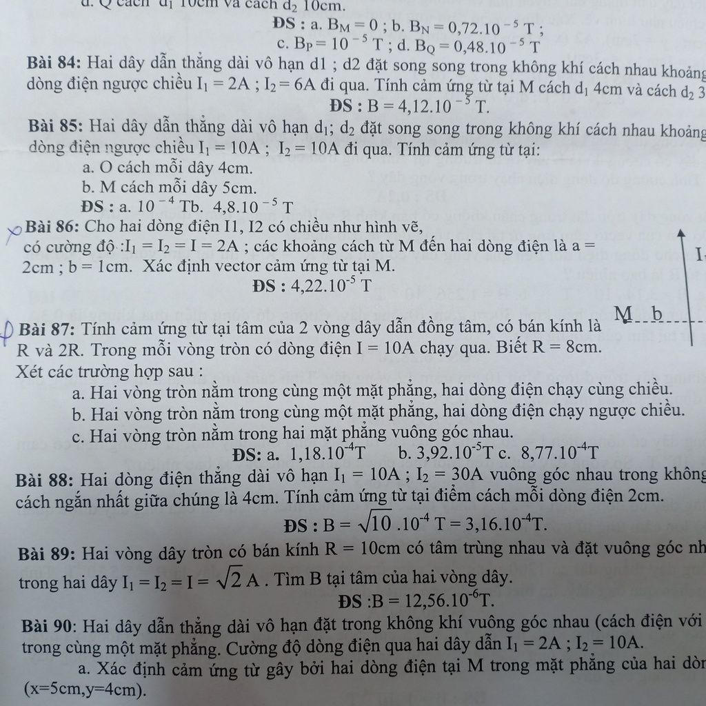 {B_1} = 2\pi {10^{ - 7}}\frac{{{I_1}}}{{{R_1}}} = 2\pi {10^{ - 7}}\frac{{10}}{{0,08}} = 7,{85.10^{ - 5}}T\\