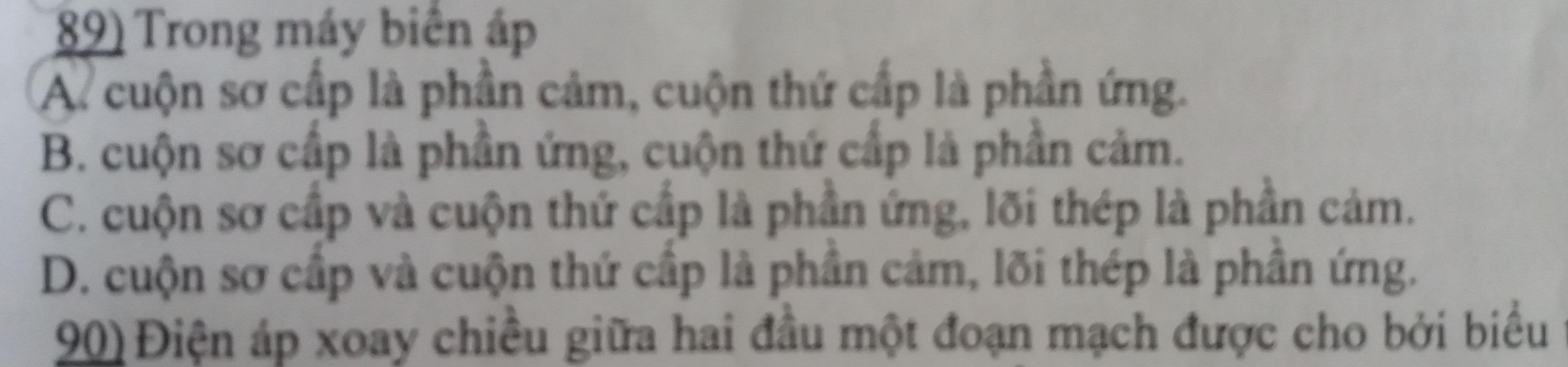 Cuộn sơ cấp và cuộn thứ cấp là phần ứng, lõi thép là phần cảm