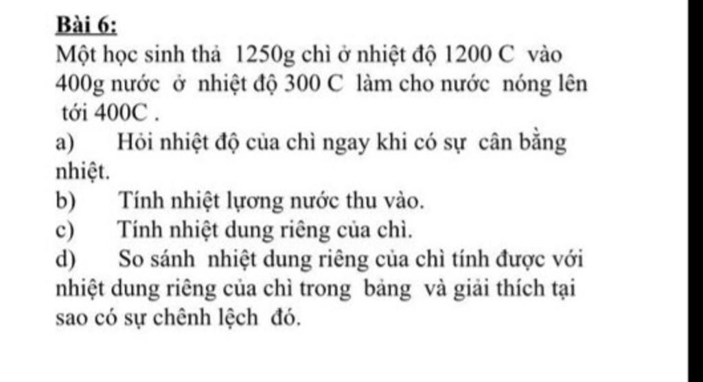 Nhiệt độ của chì ngay khi có sự cân bằng nhiệt là: