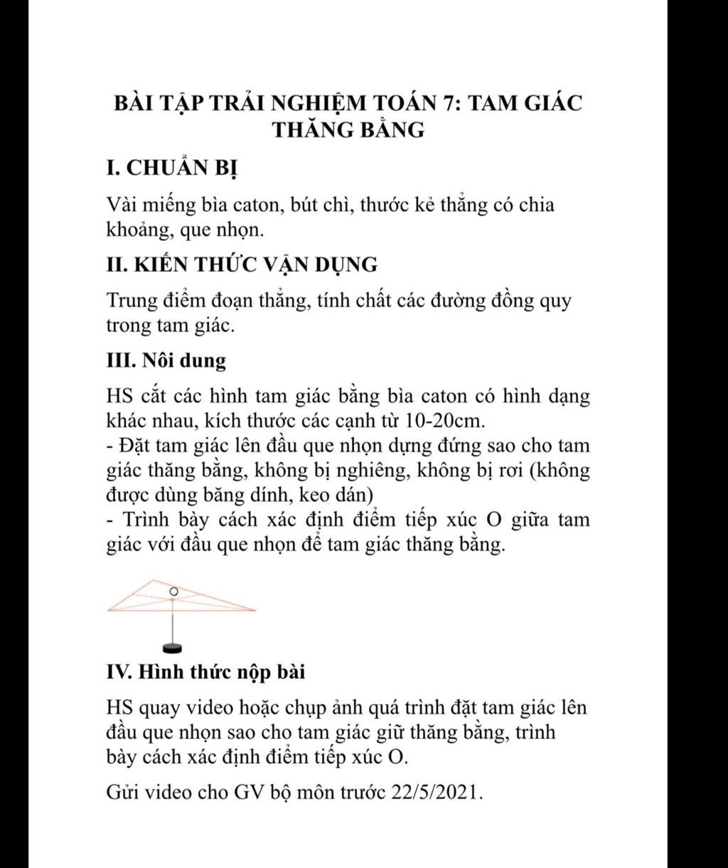 Miếng bìa caton hình tam giác sẽ thăng bằng khi điểm tiếp xúc của nó với đầu que nhọn là ở vị trí trọng tâm của miếng bìa.