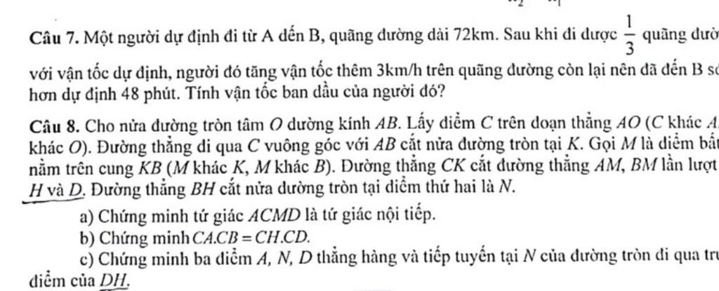 Câu 7. Một người dự định đi từ A dến B, quãng dường dài 72km. Sau khi di dược – quãng đườ