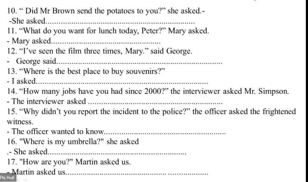 10. She asked me if Mr. Brown had sent the potatoes to me.
