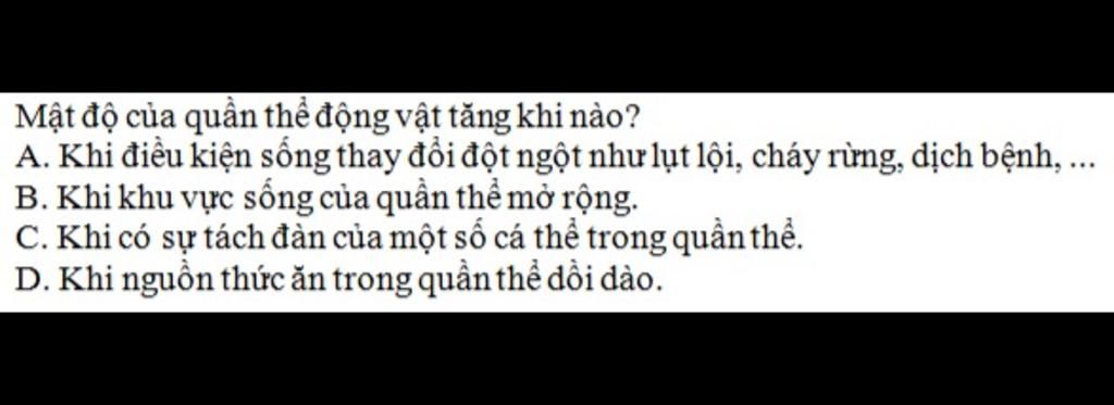 Mật độ của quần thể động vật tăng khi nguồn thức ăn trong quần thể dồi dào.( SGK/ Bài quần thể sinh vật)