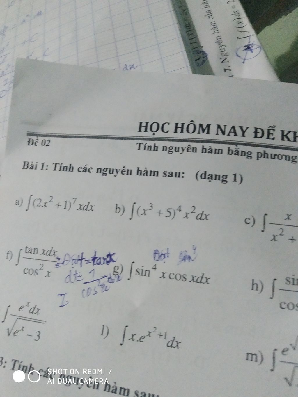 \(dt = \left( {\tan x} \right)'.dx = \frac{1}{{{{\cos }^2}x}}dx\)