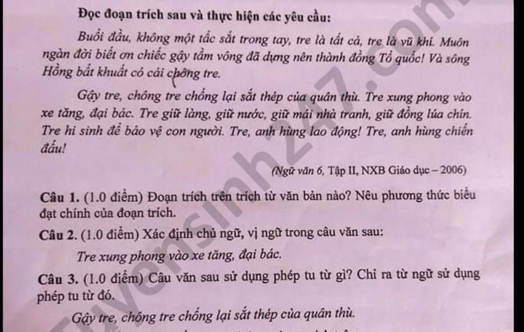 + Đoạn trích trên từ văn bản cây tre Việt Nam