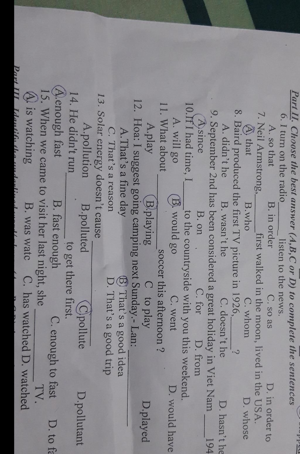 7. B who ( chỉ người nên dùng "who", "that" không đi sau dấu phẩy )