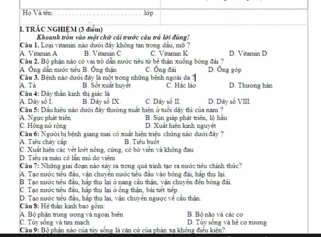 1.C.Vitamin C ko tan trong dầu mỡ mà chỉ tan trong nc
