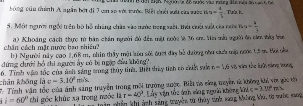 Vậy mặt người có cảm giác chân chỉ cách mặt nước $36-9=27cm$