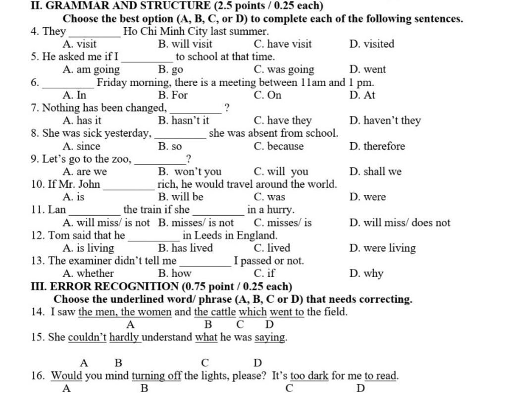 III. ERROR RECOGNITION (0.75 point / 0.25 each)
