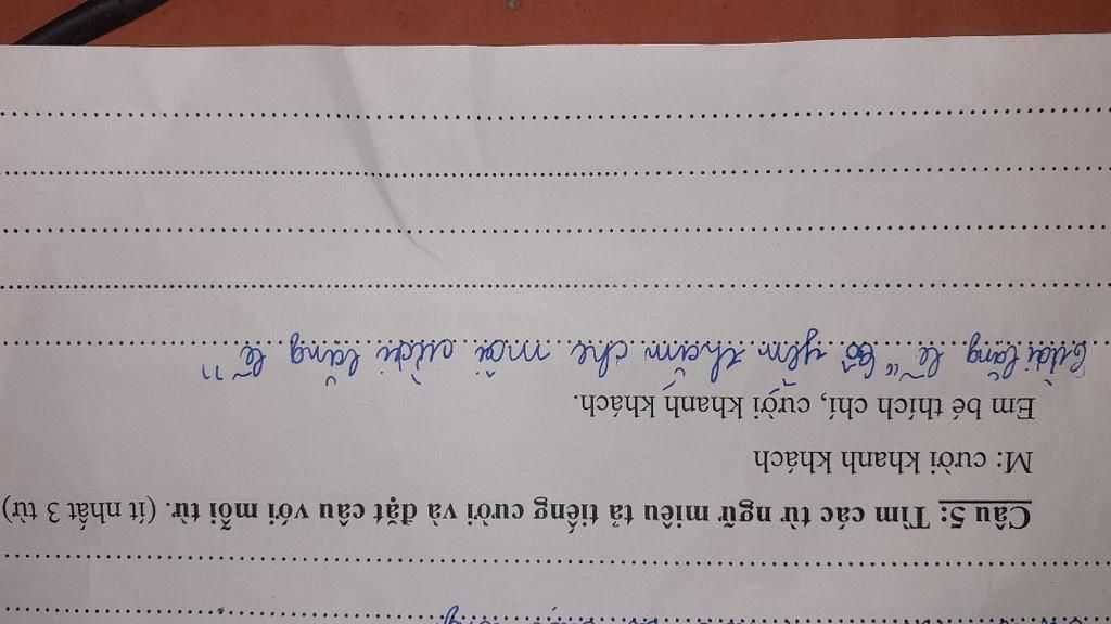 - Các từ chỉ tiếng cười: giòn gĩa, khúc khích, sằng sặc, ha ha...