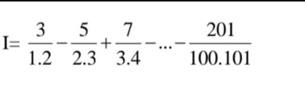 I = $\frac{3}{1.2}$ - $\frac{5}{2.3}$ - $\frac{7}{3.4}$ - ... - $\frac{201}{100.101}$