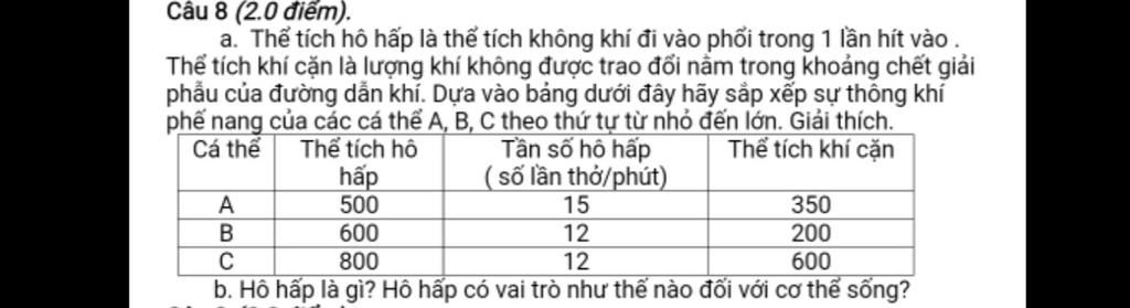 - Khí hữu ích vào tới phế nang của cá thể B là: