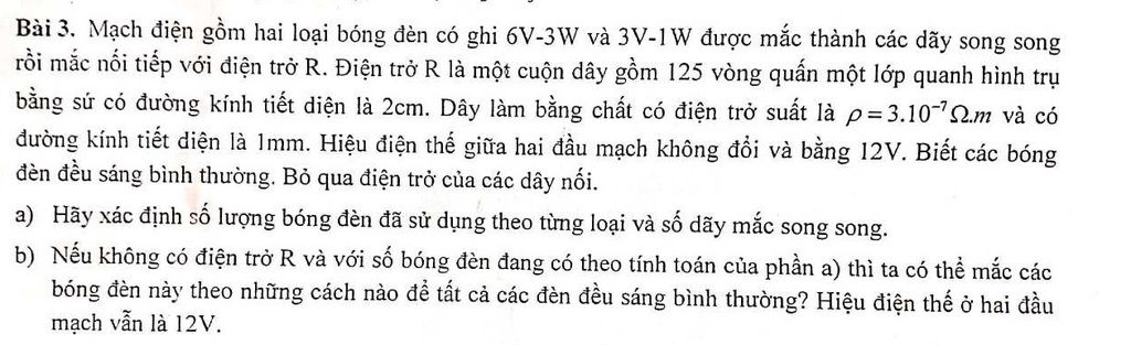 b.Với 4 bóng đèn 1 mắc song song thì ta có thể mắc thành 2 hàng mỗi hàng 2 đèn. Mắc thế này sẽ giúp các đèn sáng bình thường.