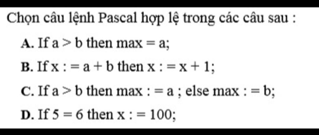 => câu lệnh If a > b then max : = a ; else max : = b; đúng