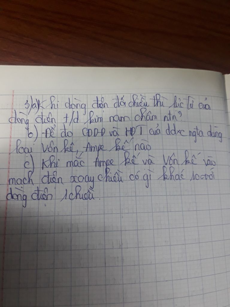 c, khi mắc ampe kế và vôn kế vào mạch điện xoay chiều mắc đầu nào của ampe kế và vôn kế vào mạch cũng được mà không cần để ý chiều +, chiều âm như dòng điện 1 chiều