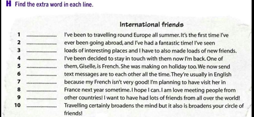H Find the extra word in each line.