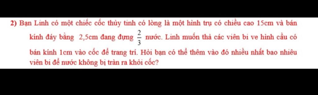 Có thể thả tối đa số viên là: 31,25π : 4/3π = 23 viên