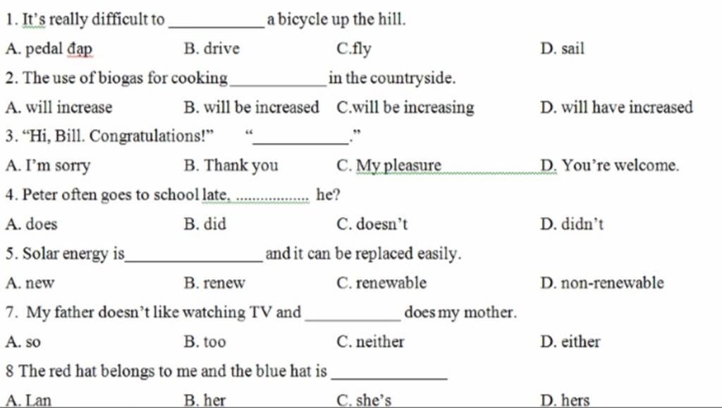 ( Câu hỏi đuôi , vế trái KĐ , vế phải PĐ và ngược lại )