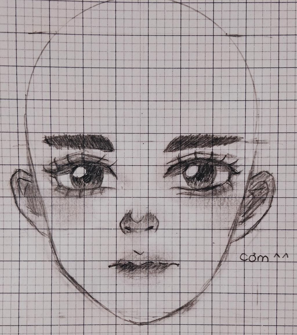<Trong tranh của bạn í, bạn vẽ lông mày thưa lại, trông nó hơi rậm nhé! Với cả nên vẽ rõ hơn phần mũi, phần sống mũi í! Phần lông mi thì nên vẽ kĩ hơi cái sợi, đừng vẽ thưa nhé!>