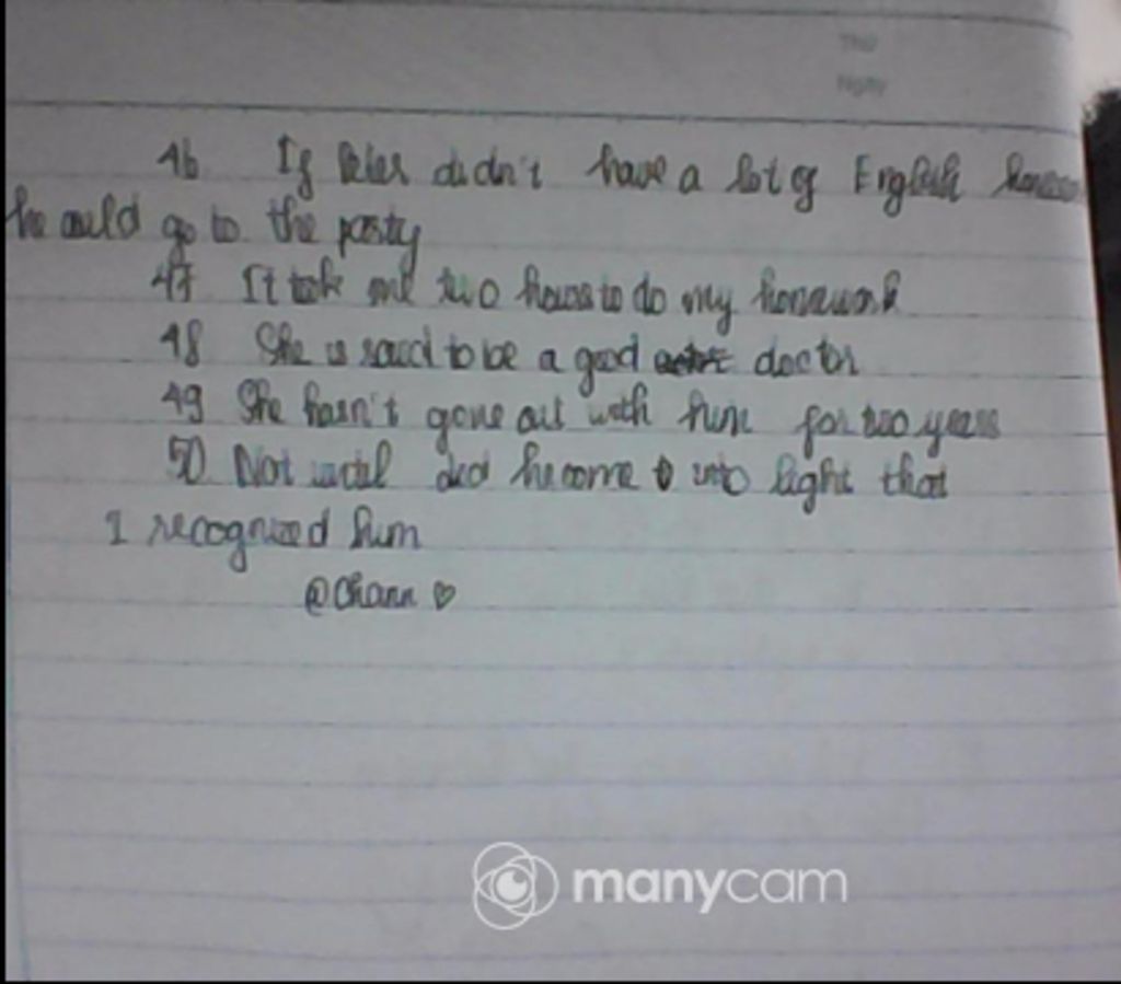 Peter has a lot of English homework.= If Peter didn’t finish his English homework