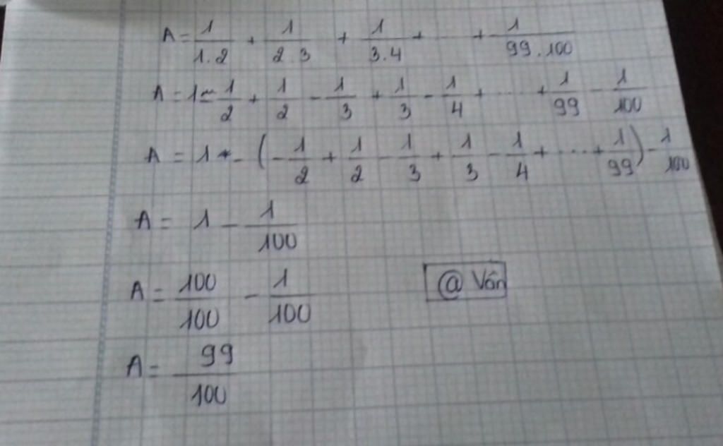 A=1/1x2 + 1/2x3 + 1/3x4 +............+ 1/99x100