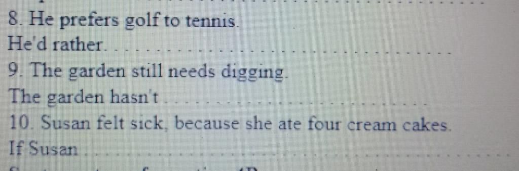 10 . If Susan hadn't eaten four cream cakes, she wouldn't have felt sick