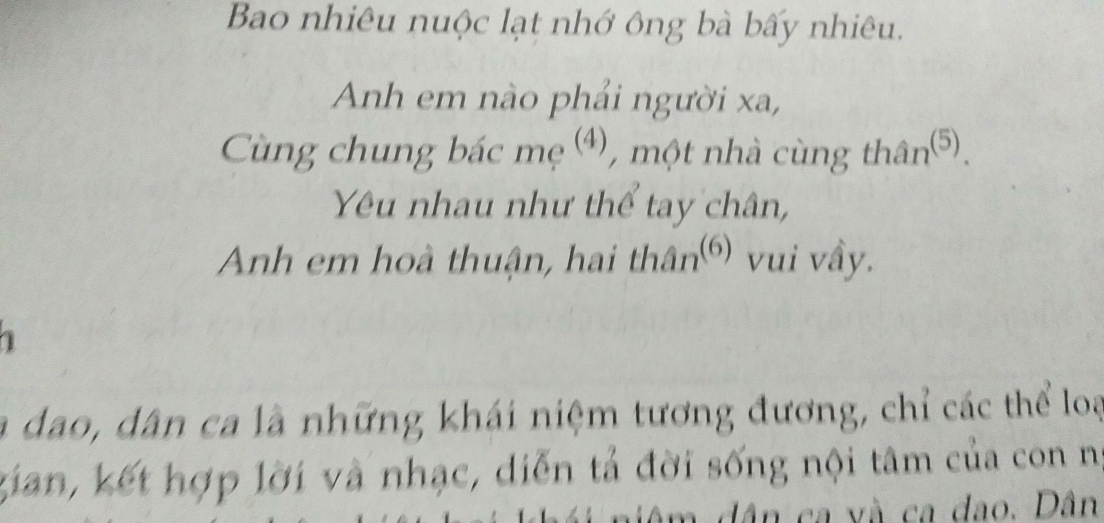 Hai câu ca dao đang nói đến tình ae, tình đồng bào với tình thần đoàn kết của dân tộc ta.