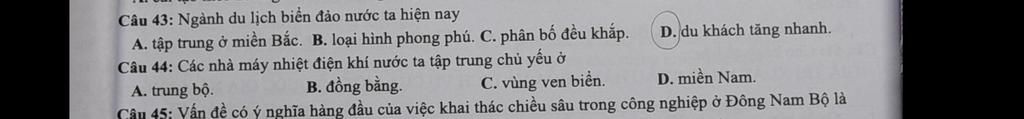 Câu 43: Ngành du lịch biển đảo nước ta hiện nay