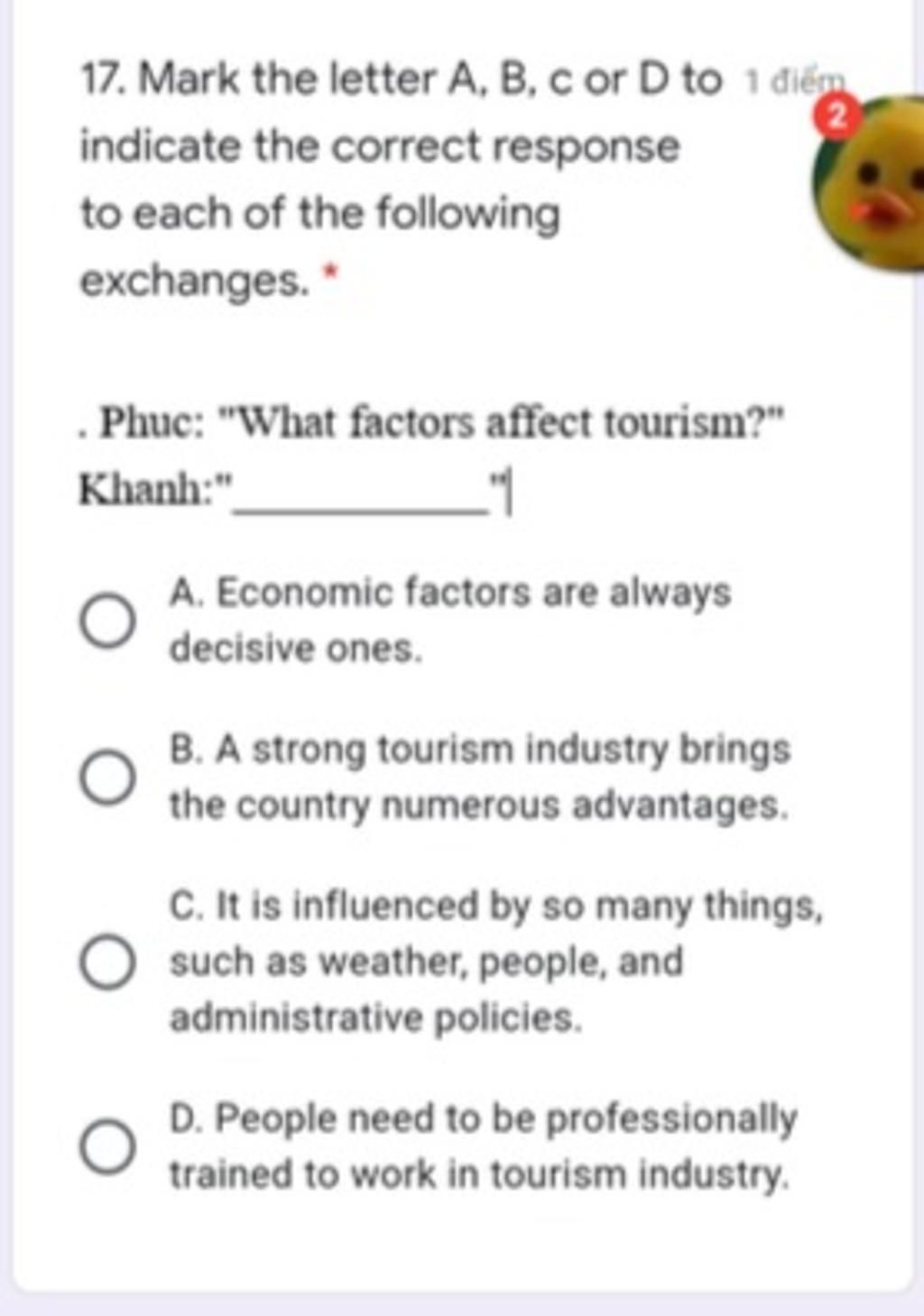 Phúc: “Những yếu tố nào ảnh hưởng đến du lịch?”