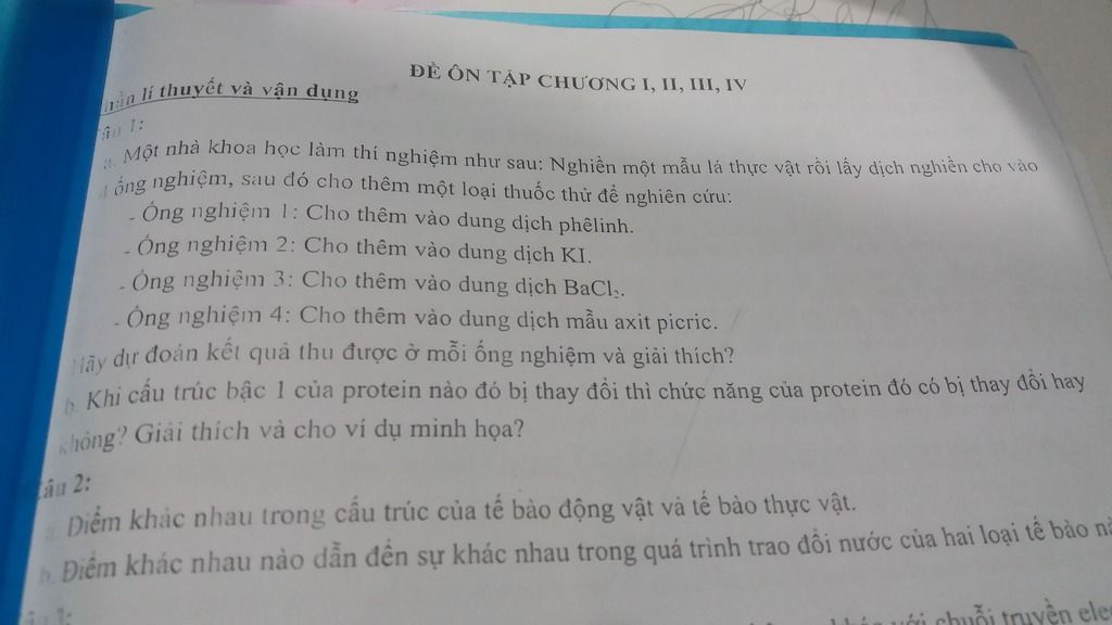 ống 4: tạo kết tủa hình kim màu vàng do trong tế bào có K+ phản ứng với chất cho thêm
