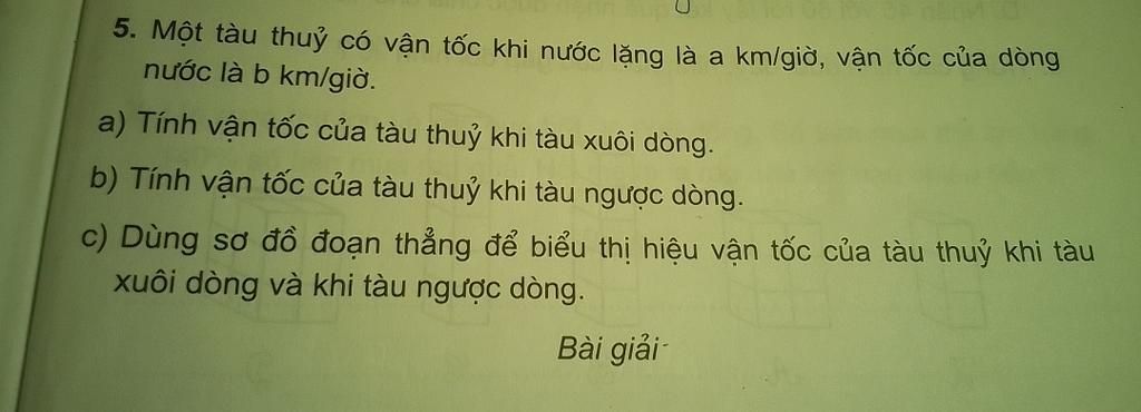 b, vận tốc của tàu thủy khi ngược dòng là: