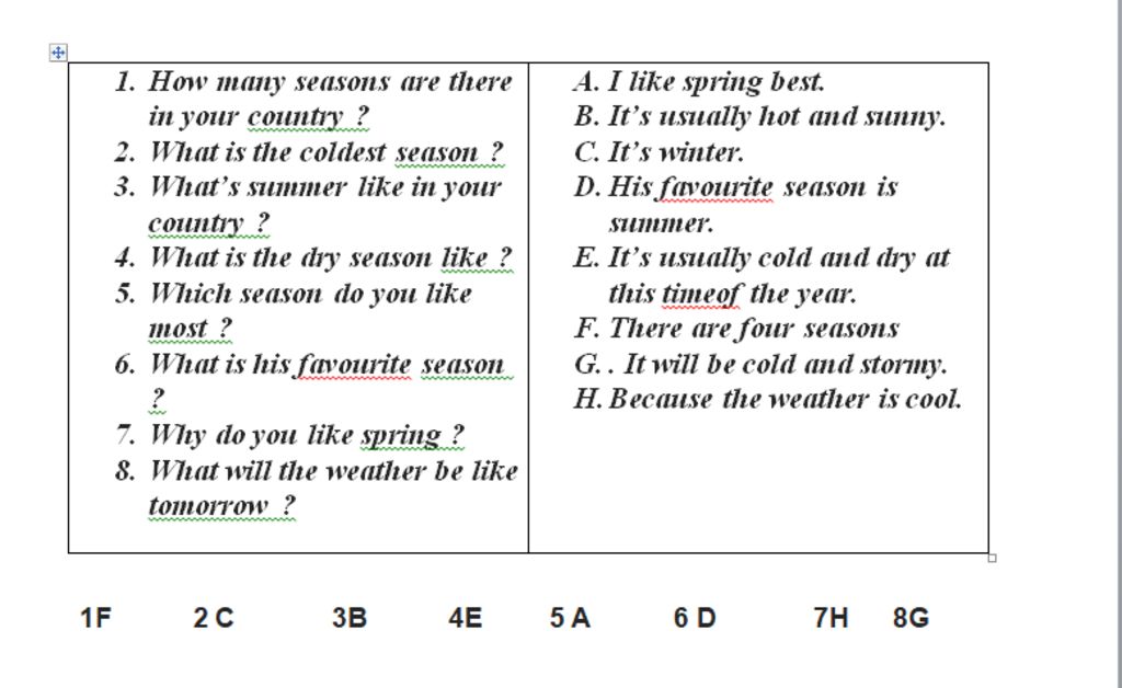 5. Which season do you like most ? E. It’s usually cold and dry at this